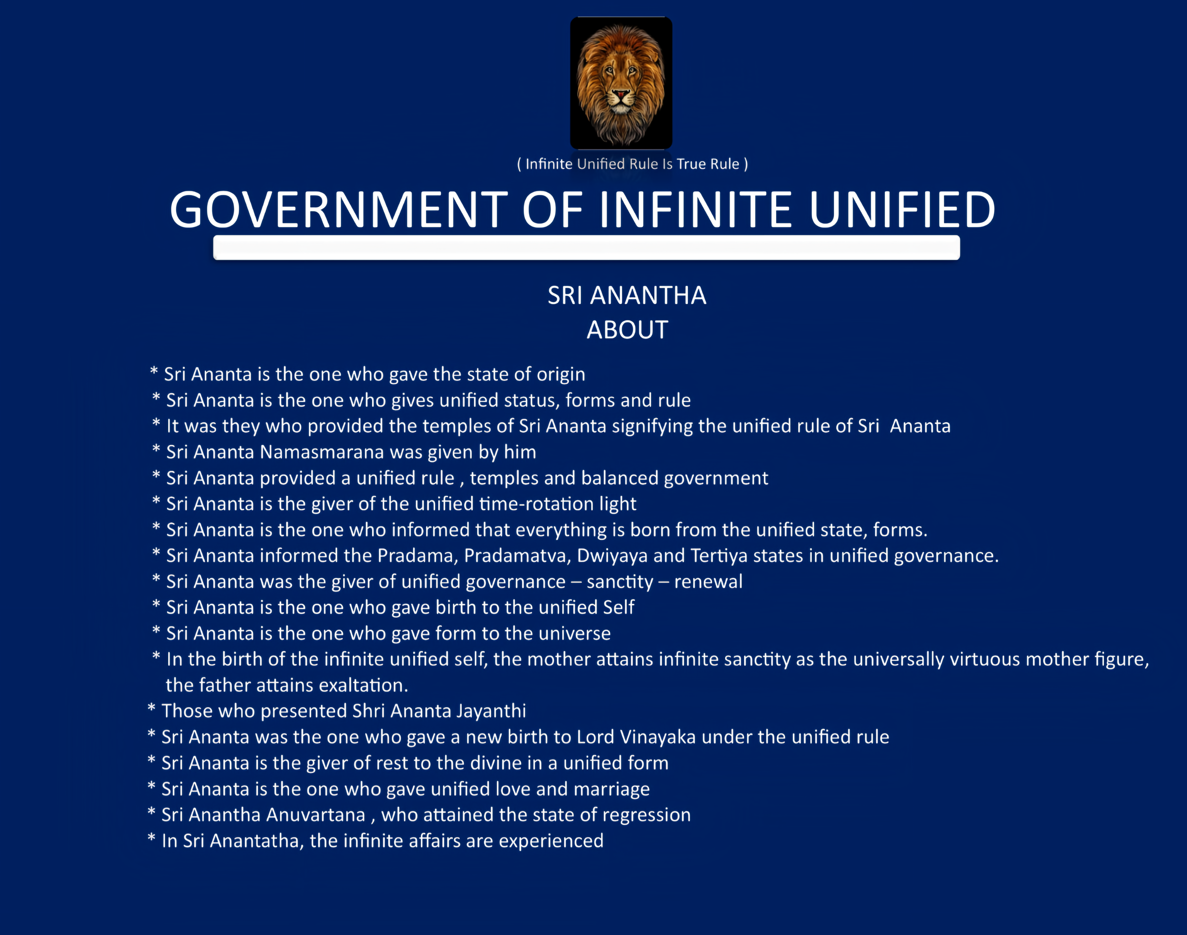 * శ్రీ అనంత ఏకీకృత పాలన దేవాలయములను , సమస్థితిని కల్గిన ప్రభుత్వమును అందించినవారు.