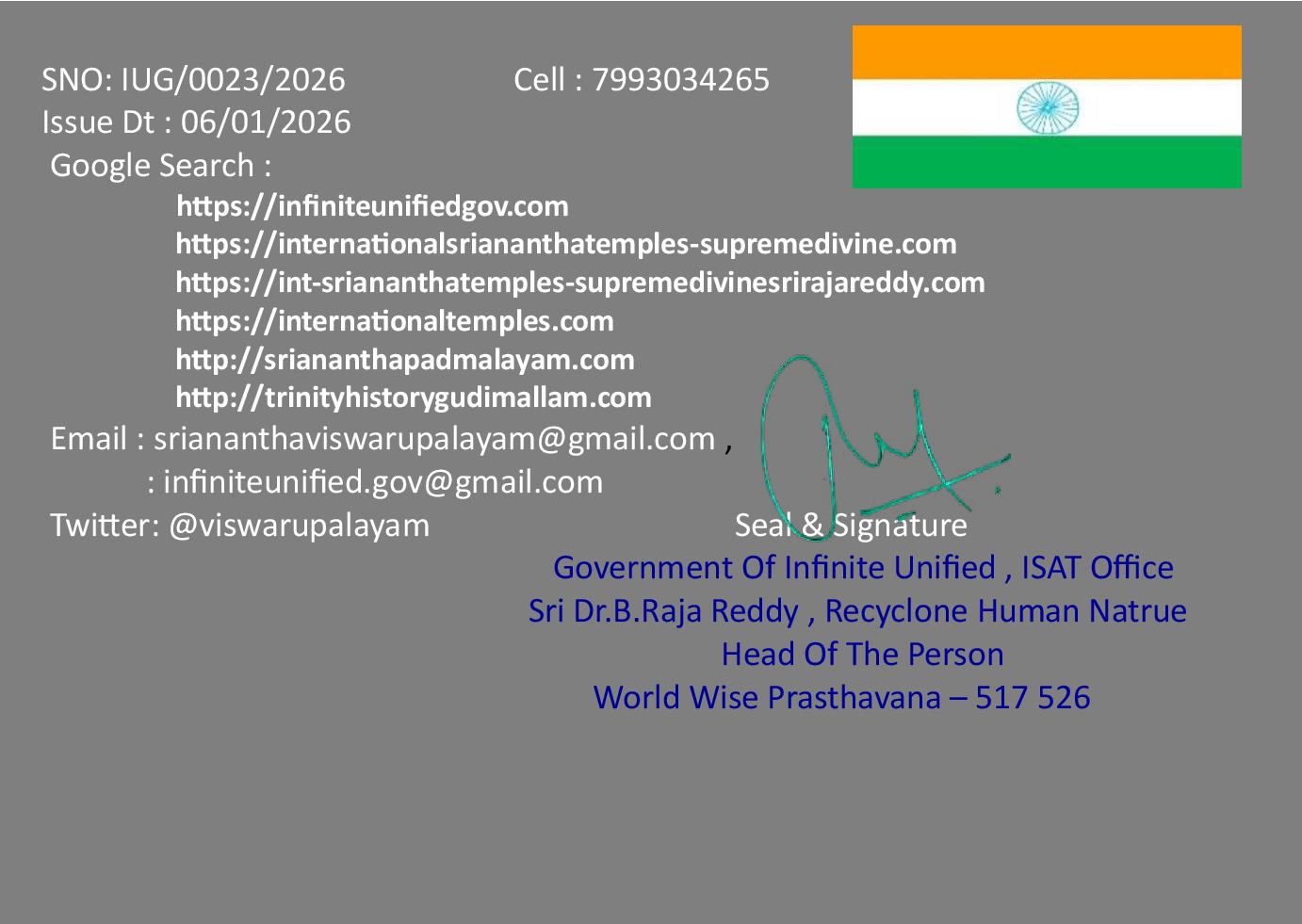 ప్రపంచ దేశాలు శ్రీ అనంత ఏకీకృత పాలన & పవిత్రతను గూర్చి