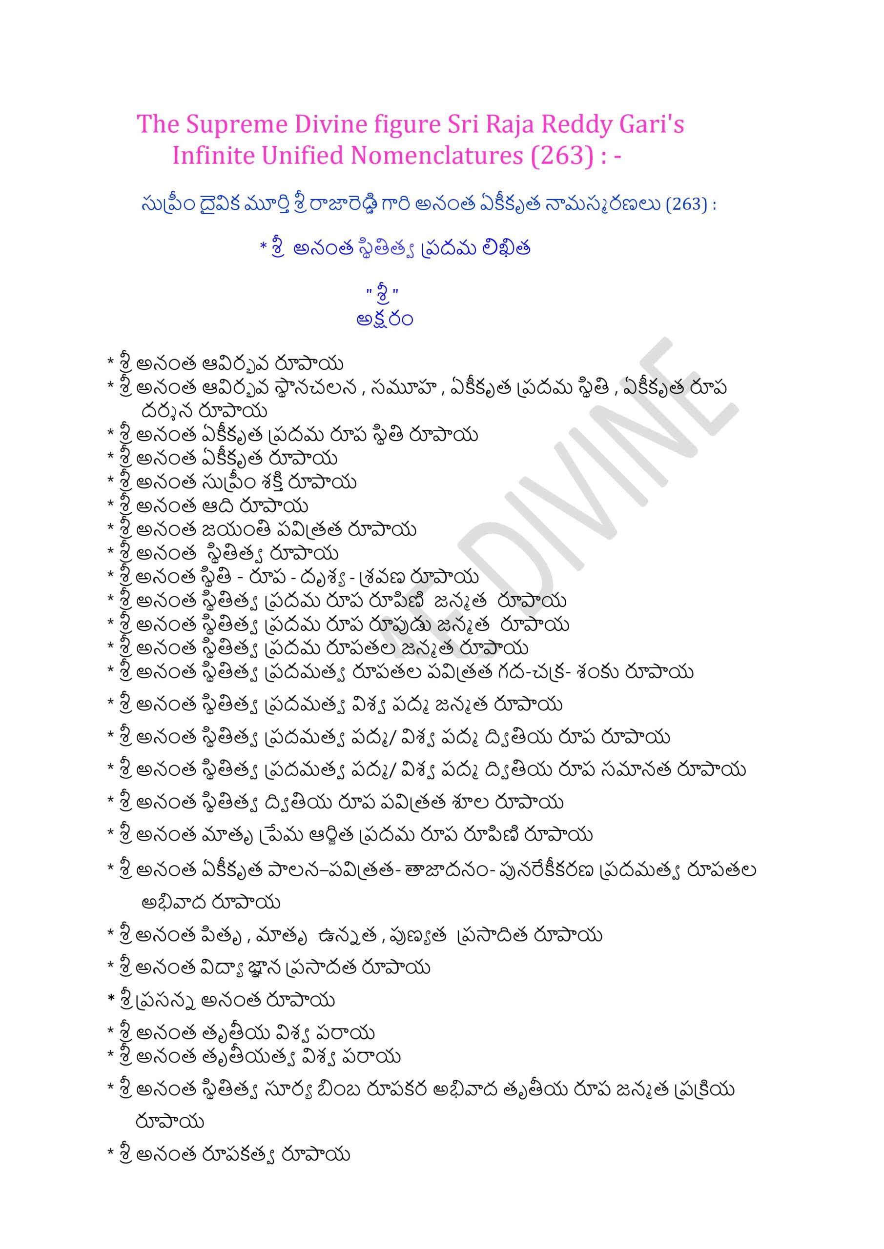 * శ్రీ అనంత ఏకీకృత పాలన–పవిత్రత- తాజాదనం- పునరేకీకరణ ప్రదమత్వ రూపతల అభివాద రూపాయ