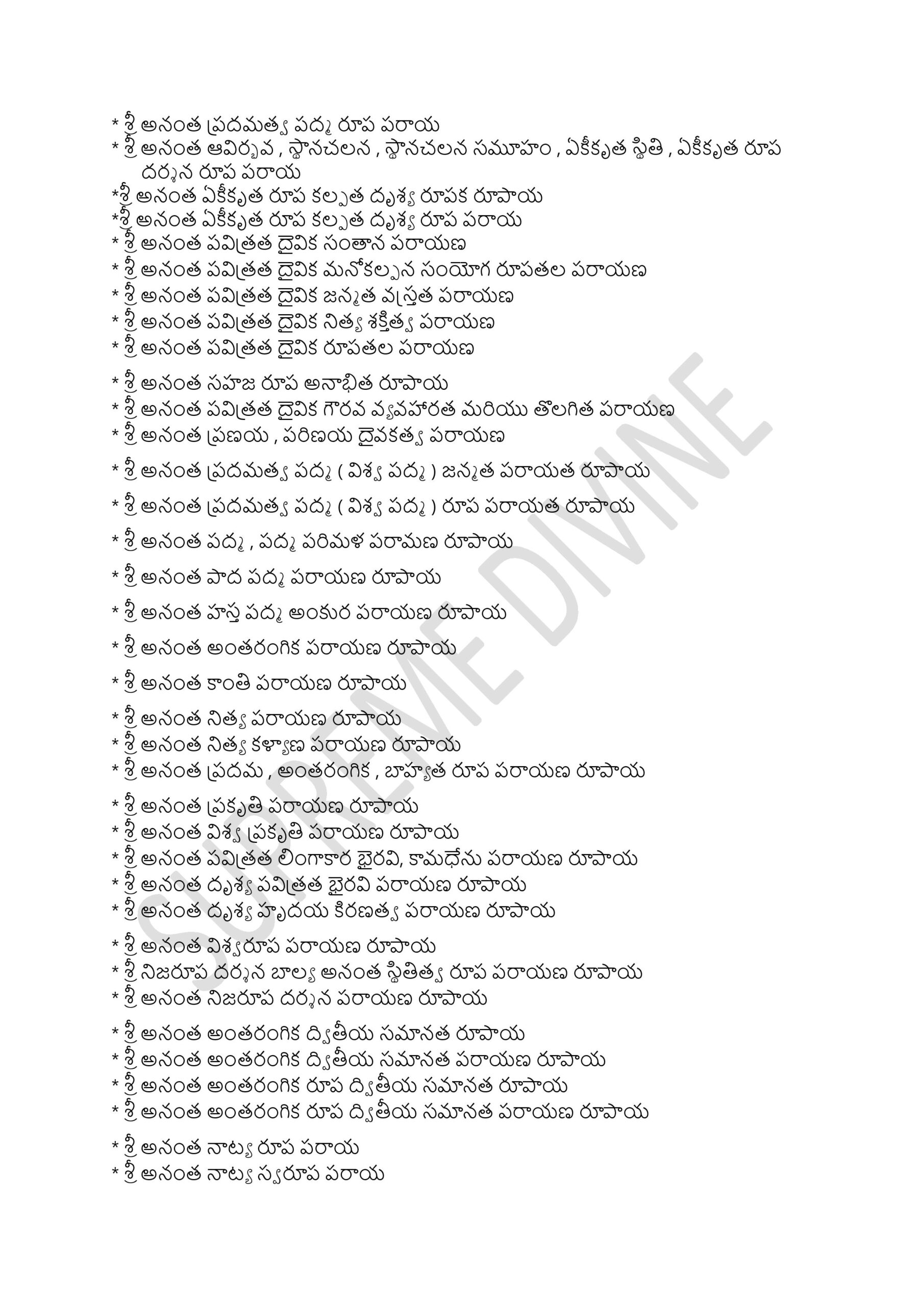 * శ్రీ అనంత అంతరంగిక రూప ద్వితీయ సమానత పరాయణ రూపాయ